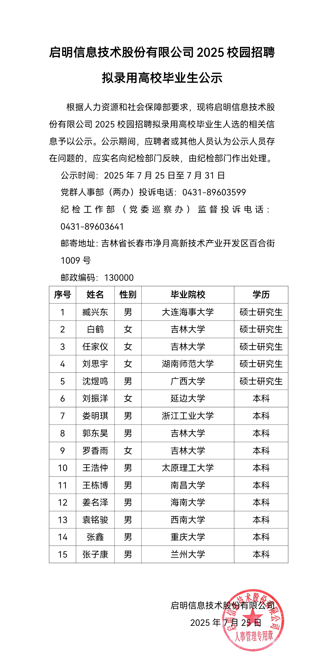 米兰milan信息技术股份有限公司2025校园招聘拟录用高校毕业生公示